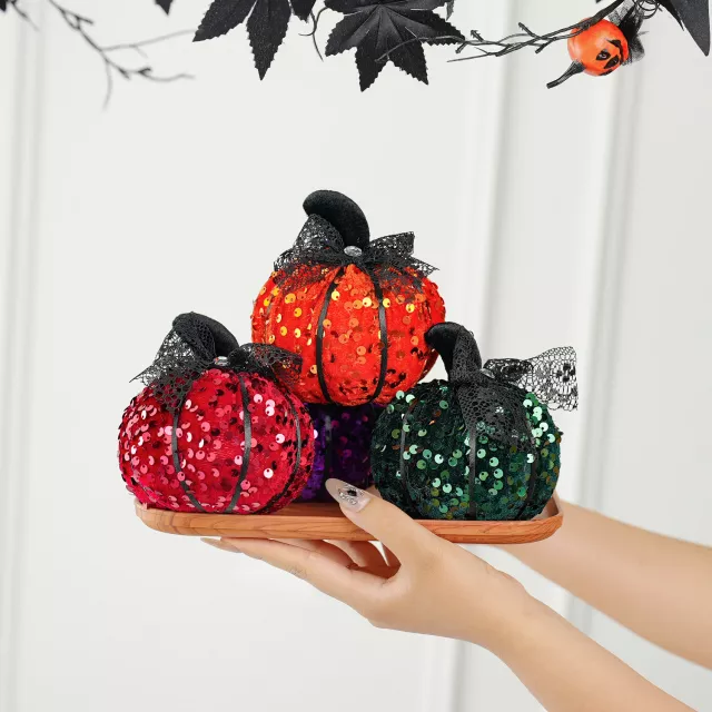 Artificial Sequin Pumpkins for Halloween Decor