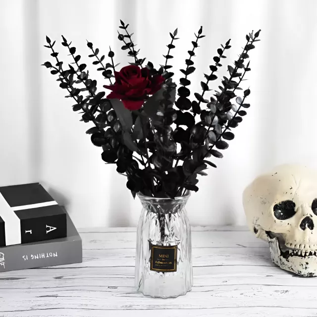 Transform any space with the timeless charm of these black artificial eucalyptus branches. Designed to mimic the natural beauty of real eucalyptus, these stems add a unique touch of sophistication and mystery to your décor. Whether you’re preparing for Halloween, Thanksgiving, or a special celebration, these versatile branches make an unforgettable impression. Their realistic texture and deep black color bring a dramatic yet elegant feel, perfect for creating stylish displays at home or for events.